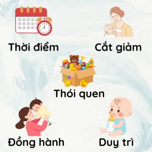Đồng hành cảm xúc: Luôn ở bên bé, trò chuyện, vỗ về nếu con khóc. Bé cần được hiểu rằng mẹ vẫn yêu thương dù không còn bú.